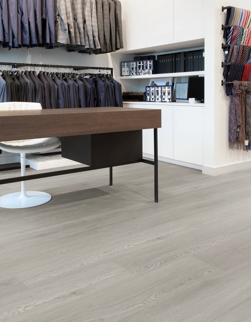 Deze vloer is tevens stijf en stabiel waardoor er geen dilatatieprofielen geplaatst hoeven te worden bij toepassing in grote ruimten. De vloer is afgewerkt met een sterke toplaag waardoor deze slijtvast is.