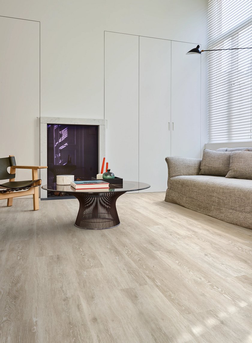 Deze vloer is tevens stijf en stabiel waardoor er geen dilatatieprofielen geplaatst hoeven te worden bij toepassing in grote ruimten. De vloer is afgewerkt met een sterke toplaag waardoor deze slijtvast is.