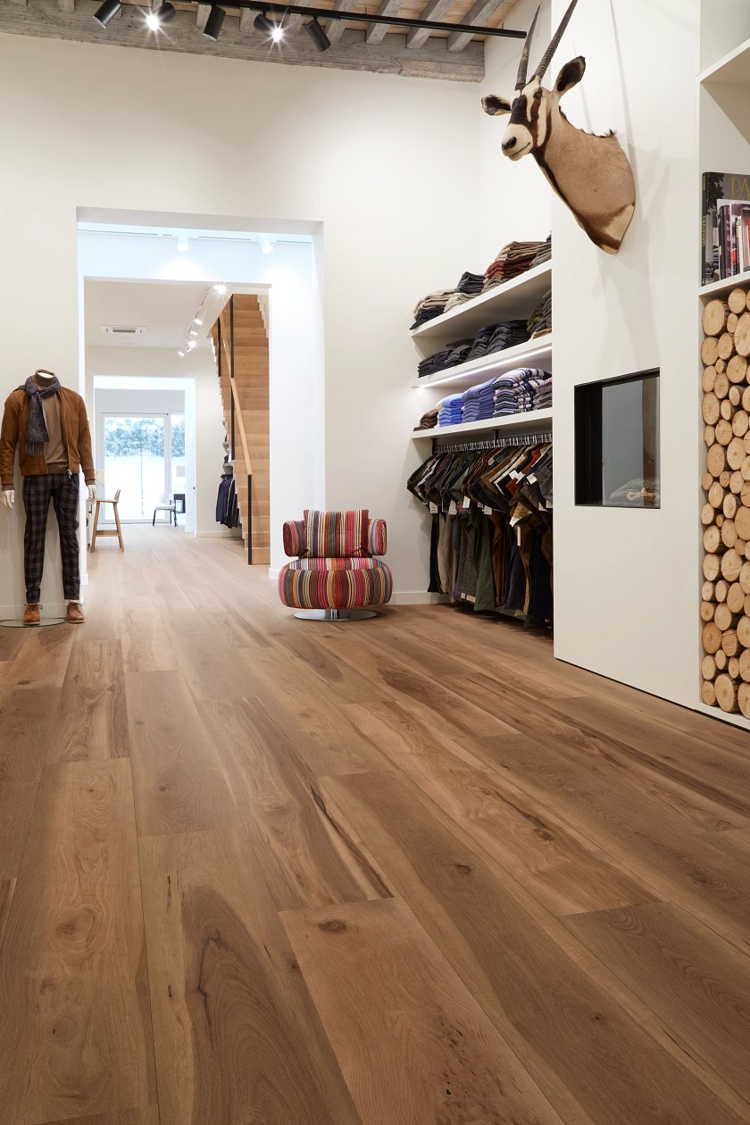Deze vloer is tevens stijf en stabiel waardoor er geen dilatatieprofielen geplaatst hoeven te worden bij toepassing in grote ruimten. De vloer is afgewerkt met een sterke toplaag waardoor deze slijtvast is.