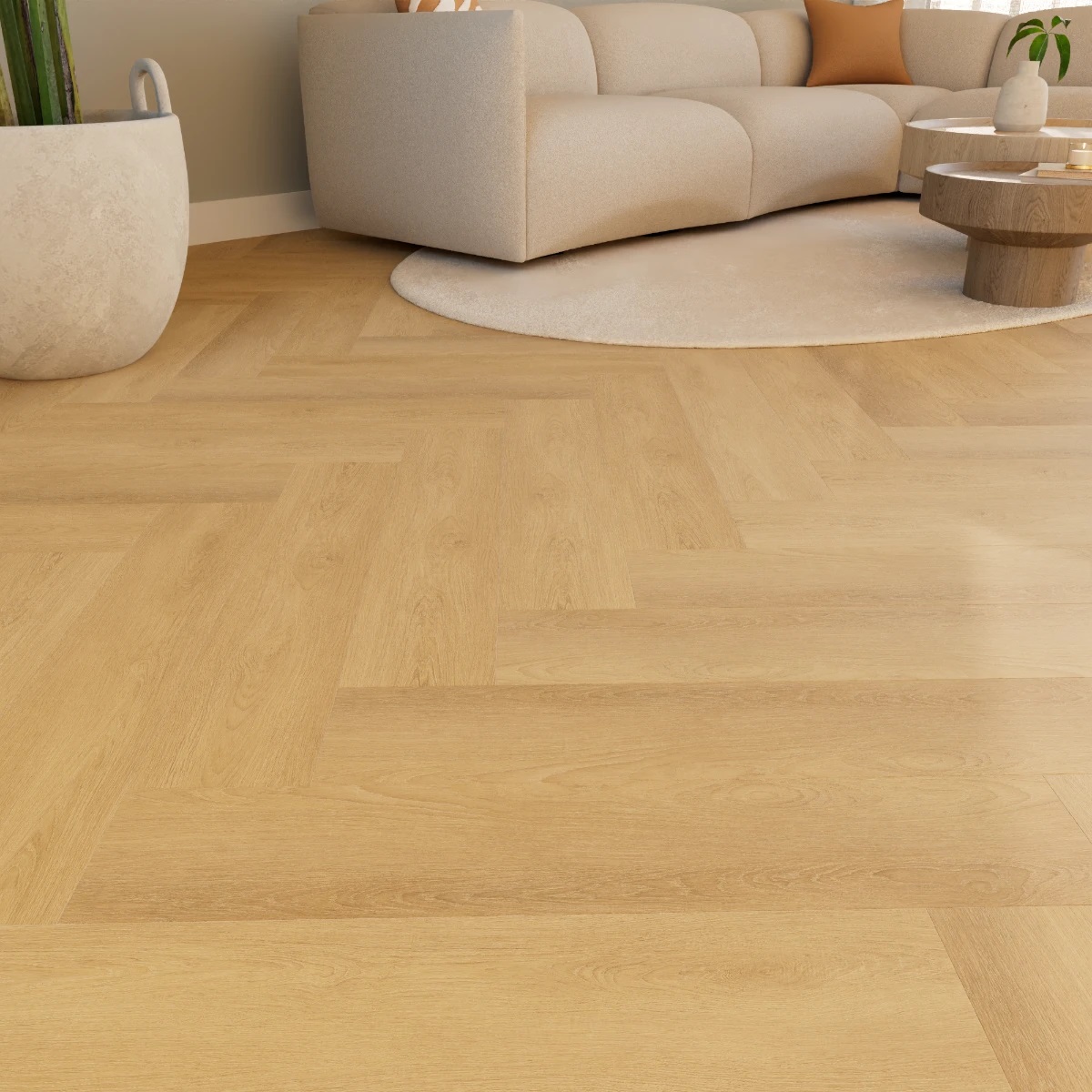 De Larven visgraatvloer uit de Saffier Allee-collectie biedt een verrassende twist op de klassieke visgraatpatronen, met de ongeëvenaarde kwaliteit van een moderne PVC vloer. De afmetingen van 153 × 765 mm per plank laten het visgraatmotief volledig tot zijn recht komen, waardoor een levendig en dynamisch vloerbeeld ontstaat. De diepe embossing en de matte afwerking zorgen voor een realistische houtstructuur en een subtiele glans, die de vloer een authentieke en luxe uitstraling geven. Larven visgraat is de ideale keuze voor wie een statement wil maken, gecombineerd met een slimme investering.